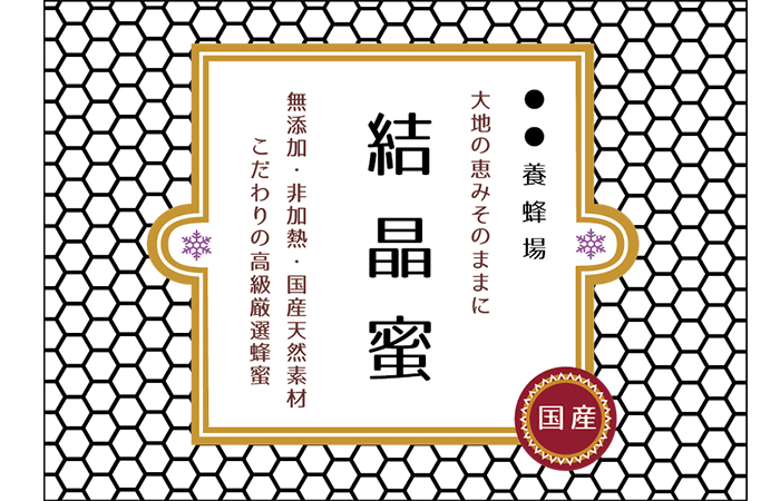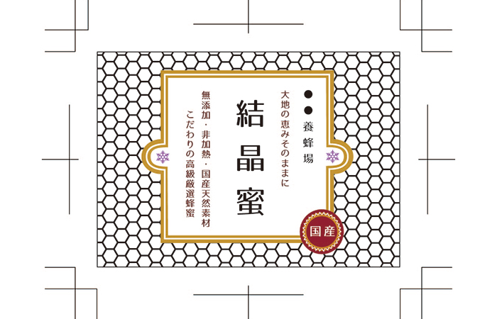 デザインイメージ ・ターゲット層:20〜80代男女 ・雰囲気:地元に根付いたスーパー(100店舗ほど、安売りではない店舗)に陳列する厳選された蜂蜜。少し高級なイメージだが大衆受けする デザイン希望。他の海外蜂蜜よりも2倍の価格、他の国産蜂蜜よりも1.5倍の価格で販売予定。